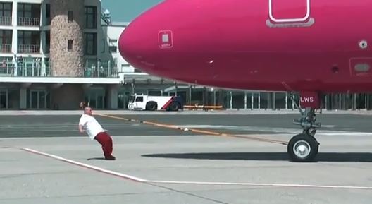 Zsolt Sinka set a new record for the country when he successfully pulled an Airbus A320 39.2 meters in 52 seconds at the Liszt Ferenc Airport in Budapest.