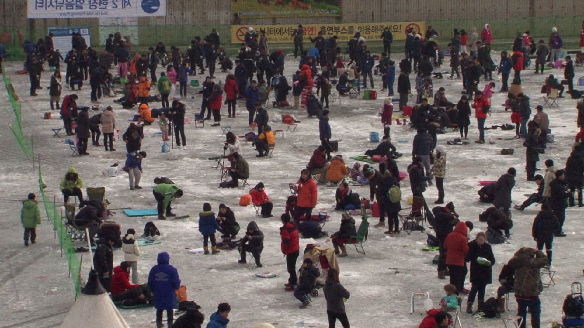 Ice-fishing, skating, sledding and snow sculpting draw thousands to an annual ice festival in South Korea.