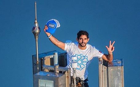 In an inspiring video that has become an online sensation and posted on his Facebook page, Sheikh Hamdan is seen waving the national flag from the highest point of Burj Khalifa, 828 metres (2,716.5 ft) high, a celebratory moment that also coincides with the UAE’s 42nd National Day celebrations.