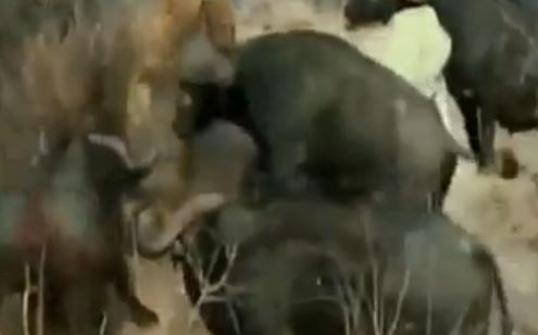 Amazing footage: Wild buffalo vs lion...