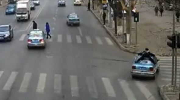 CCTV: Policeman hangs onto roof of illegal taxi