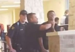 A father in Round Rock, Texas, plans to press charges against a police officer after cell phone footage emerged that shows the officer grabbing his 14-year-old son by the neck and slamming him to the floor at school.