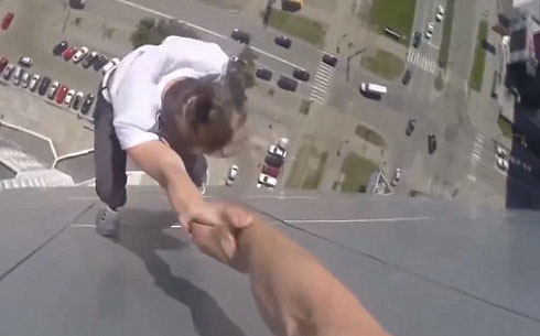 Fearless or stupid? Two men on edge of high-rise