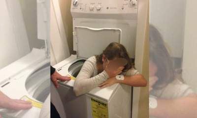 The girl was playing hide-and-seek with her cousins when she found what she thought was the ideal hiding spot — the washing machine located just below a dryer.