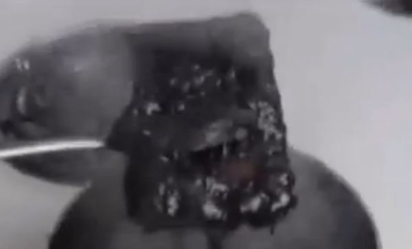 The caramel left over from the reduced beverage apparently melted the exterior of the gadget causing it to explode after a few minutes. Thick smoke is seen enveloping the area.