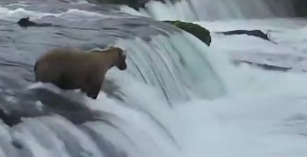 This mother bear went into survival mode when she saw her cubs fall over the edge of a waterfall.
