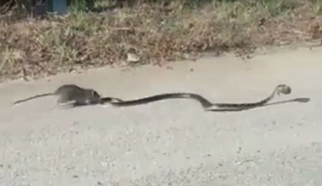 A mother rat fought off a ferocious snake in a desperate bid to save her baby.