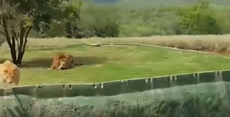 Safari park visitors in Mexico, were terrified when a lioness leaped at them with no fence between them.