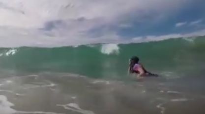 The moment a shark swims past a New Zealand man as he films his daughter swimming.