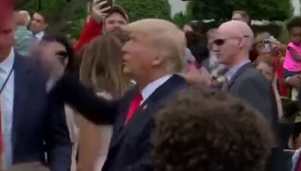 President Trump has been caught on camera signing a little boy’s hat and then appearing to fling it into the crowd.