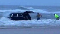 Witnesses frantically chase after the car to save the kids from drowning. They somehow managed to rescue the kids as waves tossed the car around.