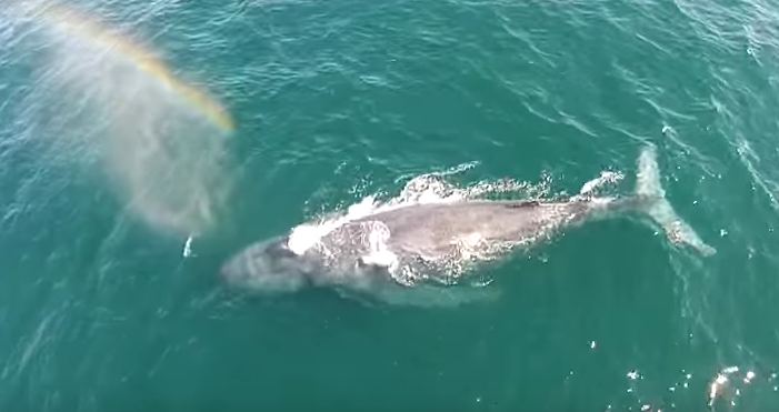 A video shot near Depoe Bay, Oregon shows the beautiful moment when a large grey whale surfaced up for air.