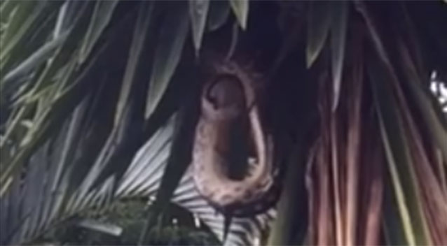 A Port Macquarie woman received an unpleasant surprise when she spotted a huge python enjoying its lunch in her backyard.