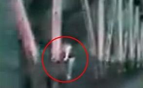 Police in Troutdale, Oregon, US, were in pursuit of a stolen Ford Taurus when, crossing a bridge, the female driver got out of the vehicle and jumped into the freezing Sandy River below.