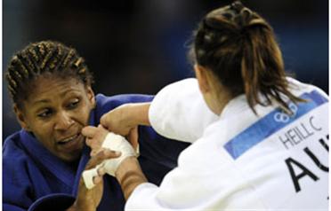 Cuba's Driulis Gonzalez fights against Austria's Claudia Heill in their women's -63kg judo match of the 2008 Beijing Olympic Games. (AFP)