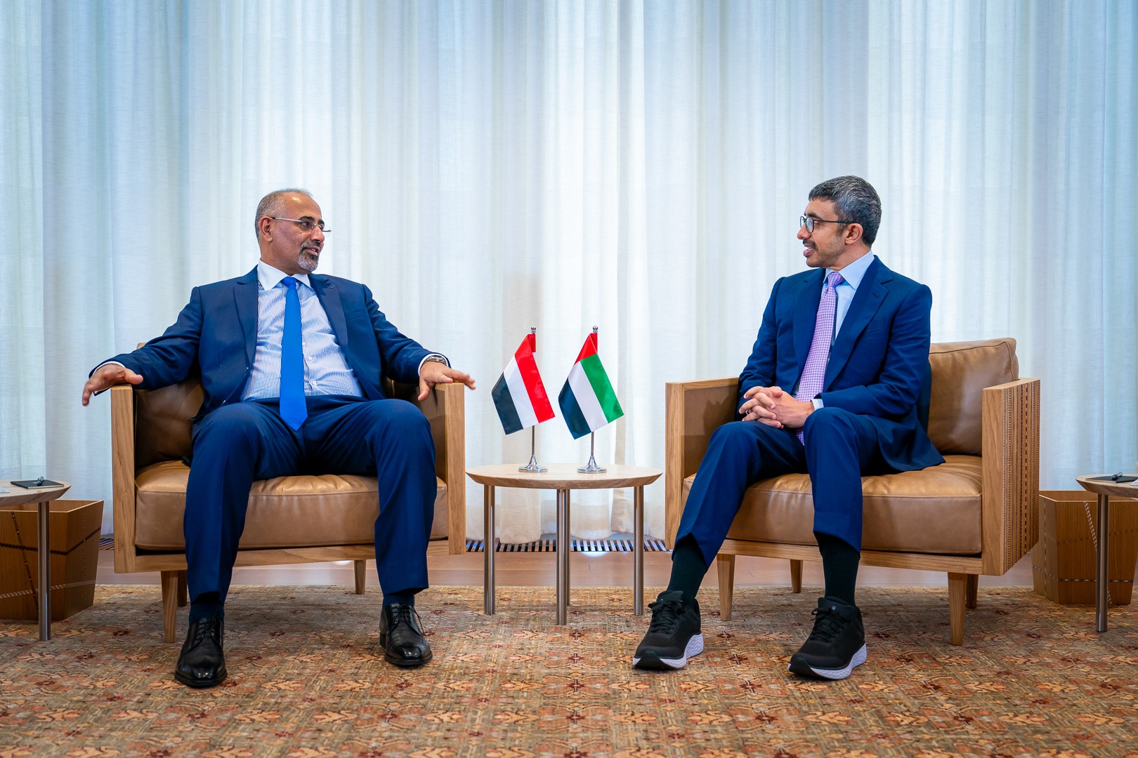 H.H. Sheikh Abdullah bin Zayed Al Nahyan, Minister of Foreign Affairs, has met with Aidrous Al Zubaidi, Deputy Head of Yemen's Presidential Leadership Council, on the sidelines of the 78th Session of the United Nations General Assembly (UNGA78) in New York.