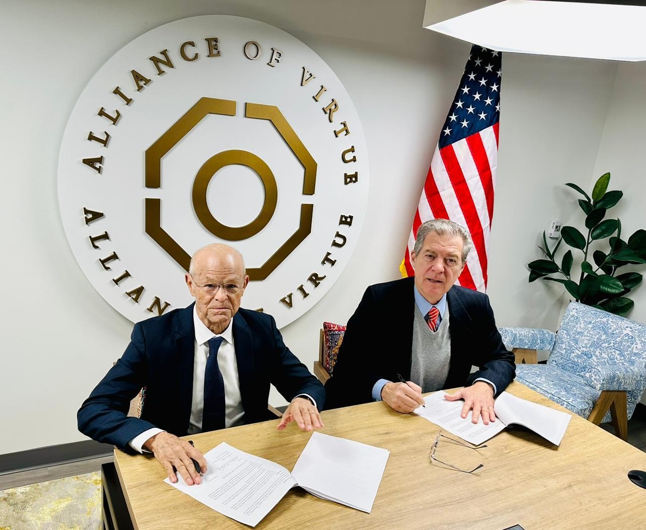 The MoC was signed by William Vendley, Board Chairman of the New Alliance of Virtue, and Senator Sam Brownback, former Ambassador for International Religious Freedom at the U.S. State Department. The signing was witnessed by Shaikh Al-Mahfooz bin Bayah, Secretary-General of the Abu Dhabi Forum for Peace, a member of the board of directors of Hilf al-Fudul's Washington Office, Rashad Hussain, Ambassador for Religious Freedom at the U.S. Department of State, and a number of religious leaders and human rights and religious freedom activists.