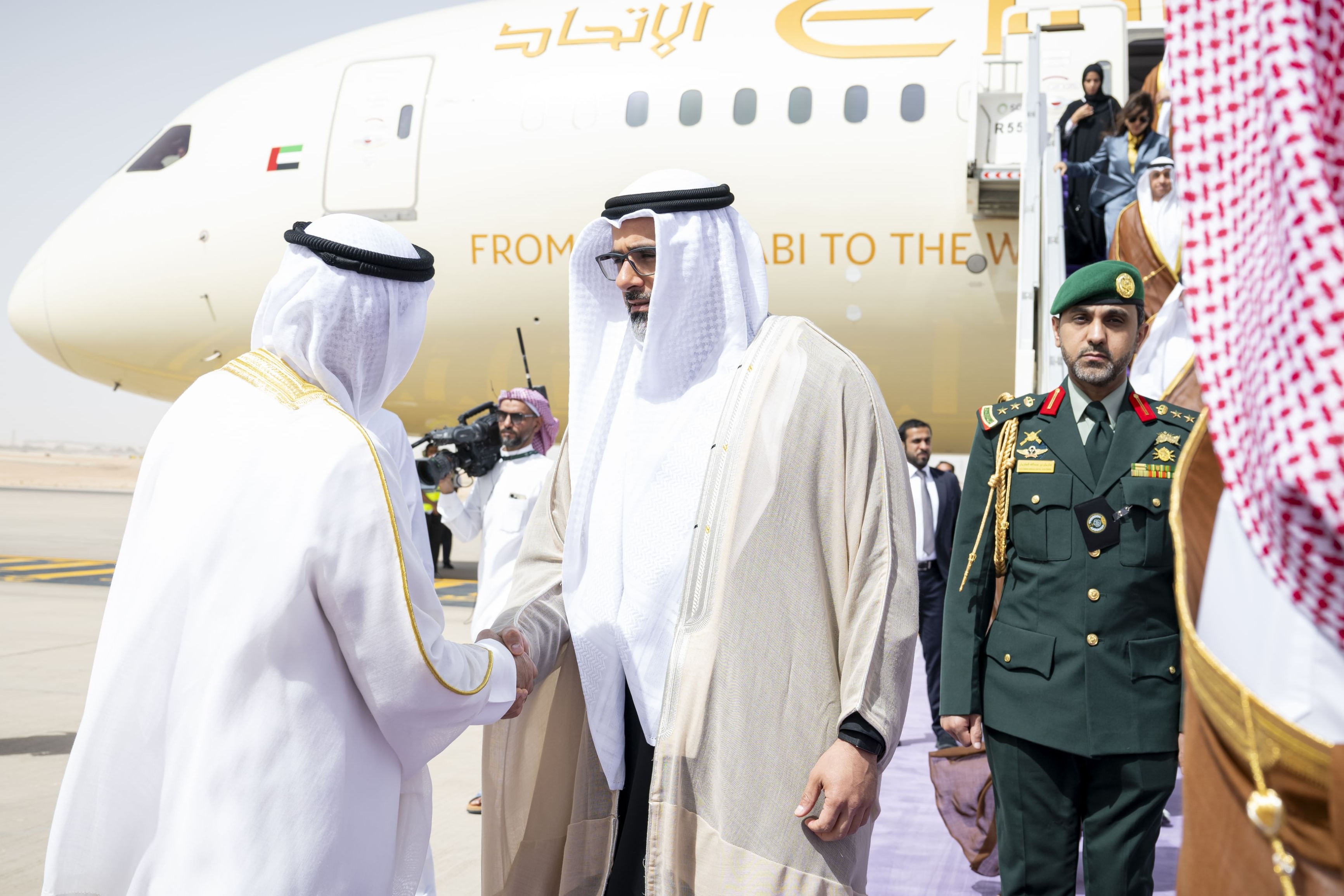 H.H. Sheikh Khaled bin Mohamed bin Zayed Al Nahyan, Crown Prince of Abu Dhabi, has arrived in Riyadh leading the UAE delegation at the Gulf-US Summit on behalf of President His Highness Sheikh Mohamed bin Zayed Al Nahyan.