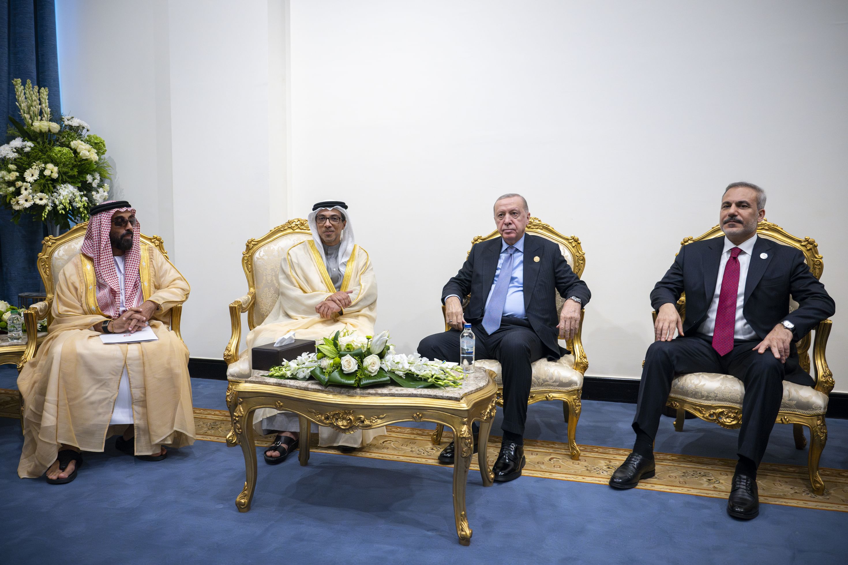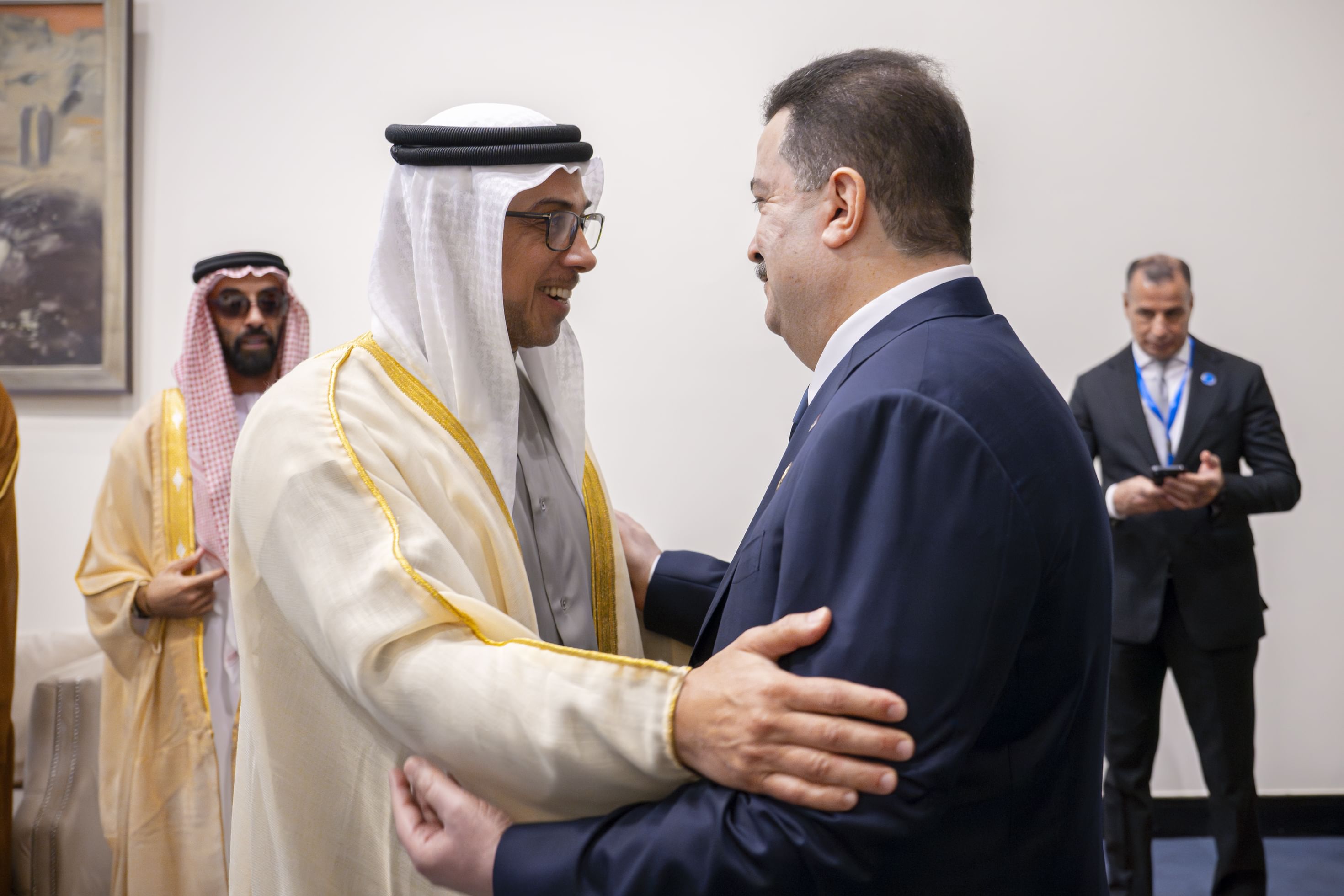 His Highness Sheikh Mansour bin Zayed Al Nahyan, Vice President, Deputy Prime Minister, and Chairman of the Presidential Court, met today — separately — with Recep Tayyip Erdoğan, President of the Republic of Türkiye, and Mohammed Shia’ Al-Sudani, Prime Minister of the Republic of Iraq. The meetings took place on the sidelines of the Sharm El-Sheikh Peace Summit, hosted by the Arab Republic of Egypt.