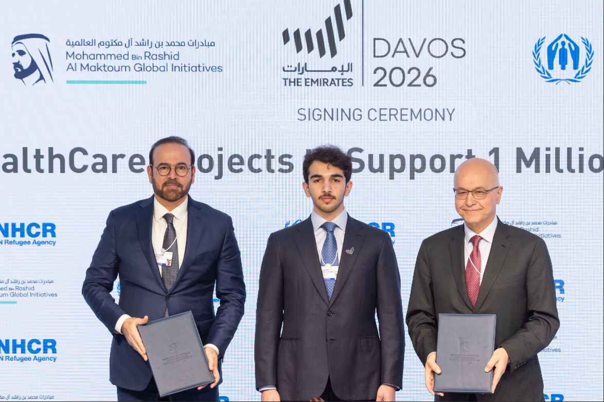 In a meeting hosted at the UAE Pavilion at the 56th edition of the World Economic Forum 2026, His Highness Sheikh Mohammed bin Rashid bin Mohammed bin Rashid Al Maktoum, Member of the Board of Trustees of MBRGI, discussed with Dr. Barham Salih, UN High Commissioner for Refugees, prospects of strengthening cooperation between MBRGI and UNHCR. They also discussed coordinating efforts to achieve shared visions, and building on the successes achieved since the partnership started in 2021.