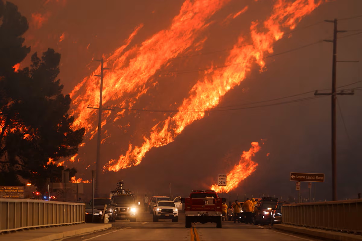 New wildfire near Los Angeles explodes to 9,400 acres, forces evacuations