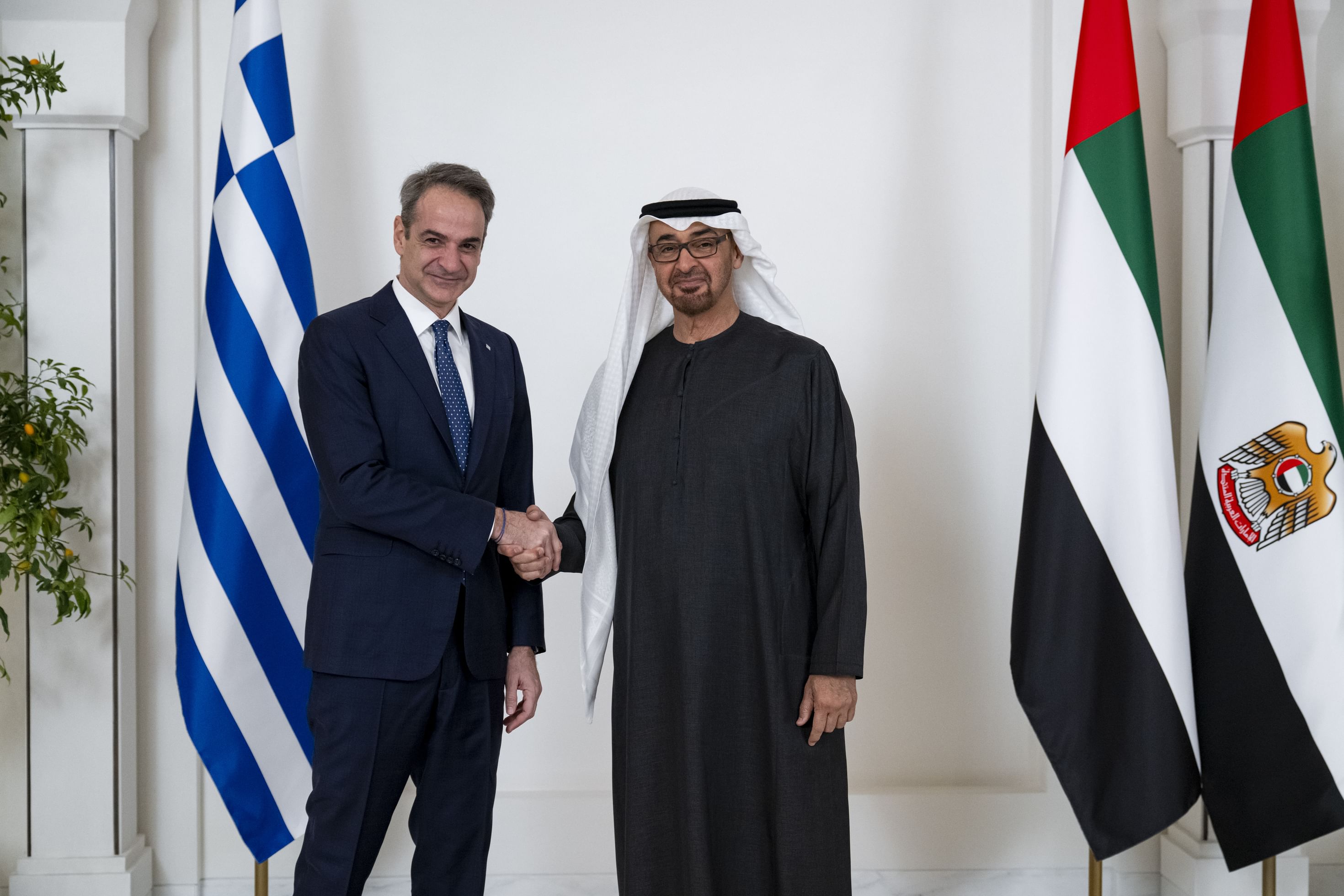 The meeting was attended by H.H. Sheikh Tahnoon bin Zayed Al Nahyan, Deputy Ruler of Abu Dhabi and National Security Adviser; H.H. Sheikh Hamdan bin Mohamed bin Zayed Al Nahyan, Deputy Chairman of the Presidential Court for Special Affairs; Sheikh Mohammed bin Hamad bin Tahnoon Al Nahyan, Advisor to the President; Reem bint Ebrahim Al Hashimy, Minister of State for International Cooperation; Dr. Sultan bin Ahmed Al Jaber, Minister of Industry and Advanced Technology; Dr. Ali Obaid Al Dhaheri, UAE Ambassador to Hellenic Republic, and several officials.