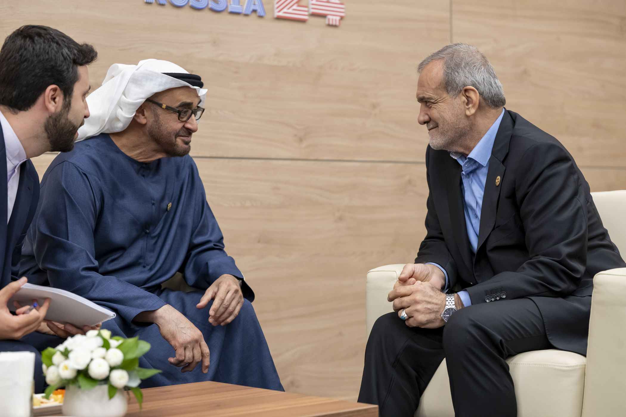 UAE President His Highness Sheikh Mohamed bin Zayed Al Nahyan met today with a number of world leaders and heads of delegations participating in the 2024 BRICS Summit, which is being held in Kazan under the chairmanship of the Russian Federation.