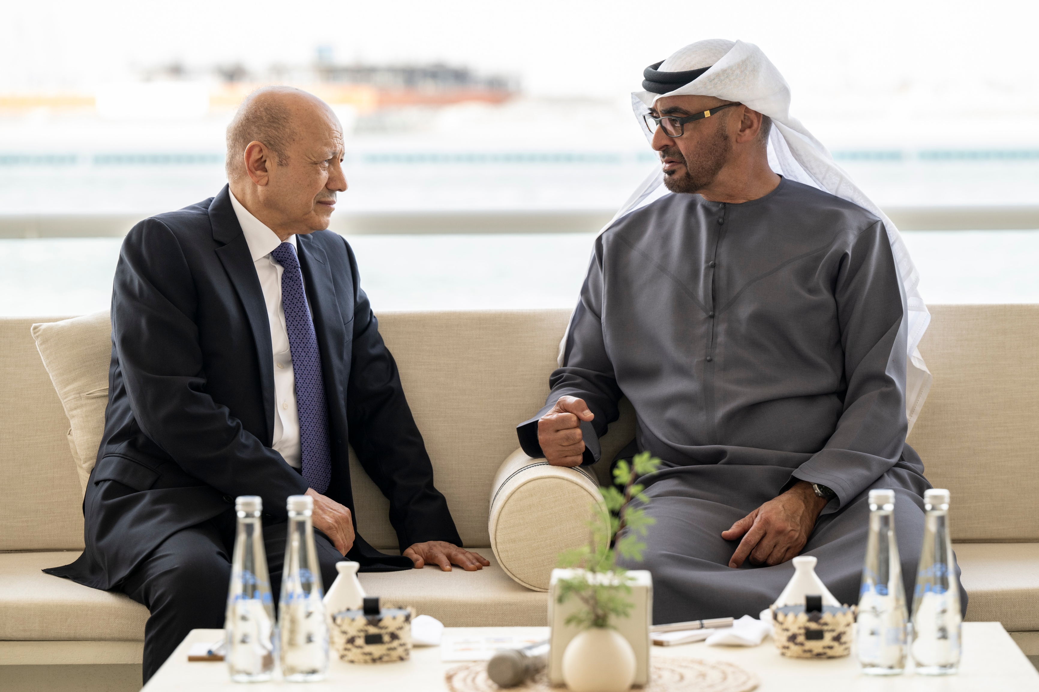The meeting was attended by His Highness Sheikh Mansour bin Zayed Al Nahyan, Vice President, Deputy Prime Minister and Minister of the Presidential Court; H.H. Sheikh Nahyan bin Zayed Al Nahyan, Chairman of the Board of Trustees of the Zayed Charitable and Humanitarian Foundation; H.H. Lt. General Sheikh Saif bin Zayed Al Nahyan, Deputy Prime Minister and Minister of the Interior; H.H. Sheikh Abdullah bin Zayed Al Nahyan, Minister of Foreign Affairs, and the accompanying delegation of the Chairman of Yemen’s Presidential Leadership Council.
