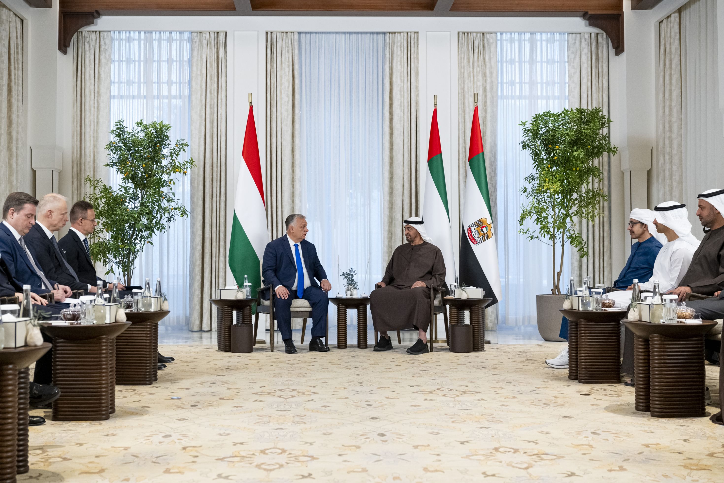 The meeting was attended by The meeting was attended by H.H. Sheikh Abdullah bin Zayed Al Nahyan, Deputy Prime Minister and Minister of Foreign Affairs; H.H. Sheikh Hamdan bin Mohamed bin Zayed Al Nahyan, Deputy Chairman of the Presidential Court for Special Affairs; Sheikh Mohamed bin Hamad bin Tahnoon Al Nahyan, Advisor to the UAE President; Ali bin Hammad Al Shamsi, Secretary-General of the Supreme Council for National Security; Reem bint Ebrahim Al Hashimy, Minister of State for International Cooperation; Sarah bint Yousif Al Amiri, Minister of Education; Dr. Thani bin Ahmed Al Zeyoudi, Minister of State for Foreign Trade; Noura bint Mohammed Al Kaabi, Minister of State; Abdulla bin Mohammed bin Butti Al Hamed, Chairman of the National Media Office; Faisal Al Bannai, Advisor to the UAE President for Strategic Research and Advanced Technology Affairs; Mohamed Al Abbar, Chairman of Eagle Hills; and Saud Hamad Al Shamsi, UAE Ambassador to Hungary.