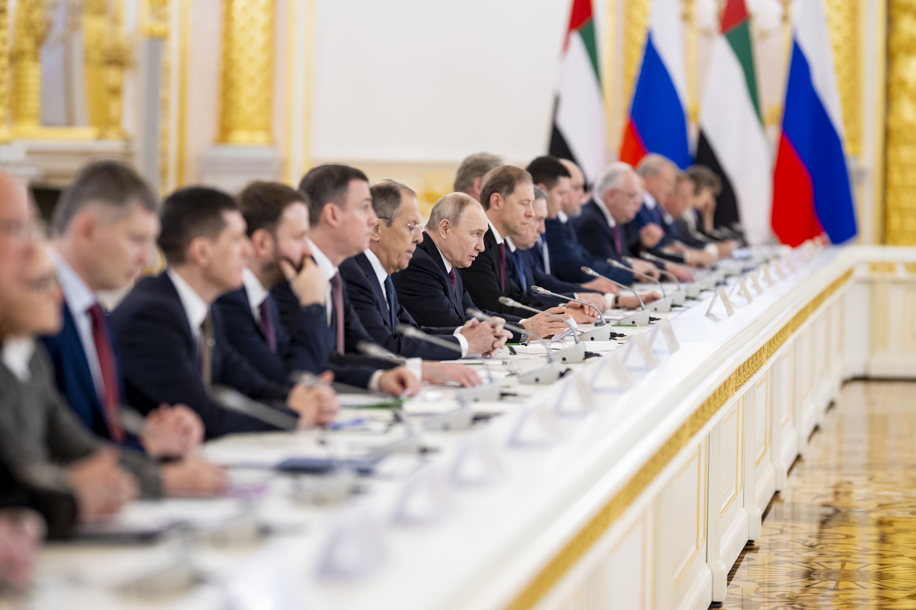 The talks were attended by H.H. Sheikh Hamed bin Zayed Al Nahyan, Managing Director of the Abu Dhabi Investment Authority; H.H. Sheikh Hamdan bin Mohamed bin Zayed Al Nahyan, Deputy Chairman of the Presidential Court for Special Affairs; and Sheikh Mohammed bin Hamad bin Tahnoon Al Nahyan, Advisor to the UAE President, along with a number of Sheikhs, ministers, and senior officials, as well as several ministers and senior officials in Russia.