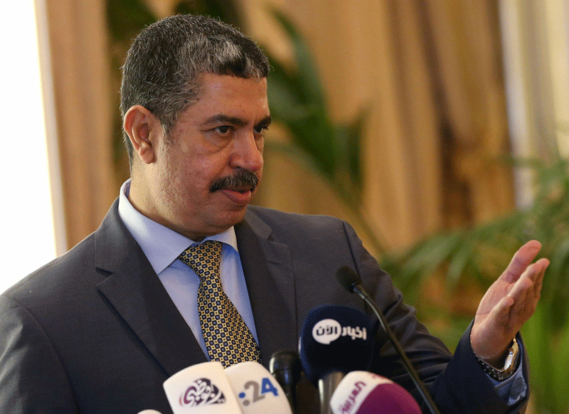 Yemen's Prime Minister and Vice President Khaled Bahah gestures as he attends a news conference in Abu Dhabi on Tuesday. (Reuters)